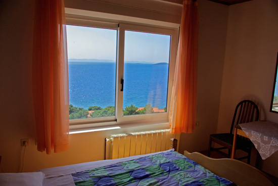 Apartment 2+1 it's an apartment with one bedrooms, kitchen with living room, bathroom and one terrace with a sea view. Bedrooom is located on the semi floor of the apartment. In the bedroom is a big double bed. In the kitchen You can find all the necessary for cook. You can also make a dinner on the terrace where is one table for 4 persons. The apartment is situated on the first floor of the house with the dimension of 40m2. It's ideal for one couple with child.
